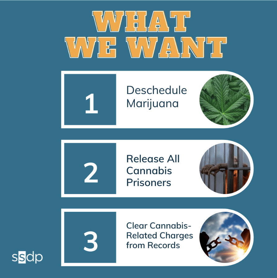 Wednesday, April 30th: Cannabis Unity Coalition Lobby Day where SSDP will deliver materials to every single office of Congress and ask for support for cannabis descheduling and retroactive justice.